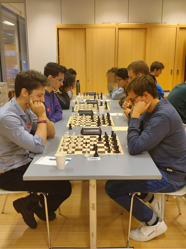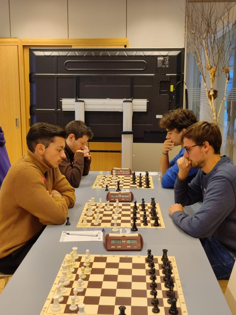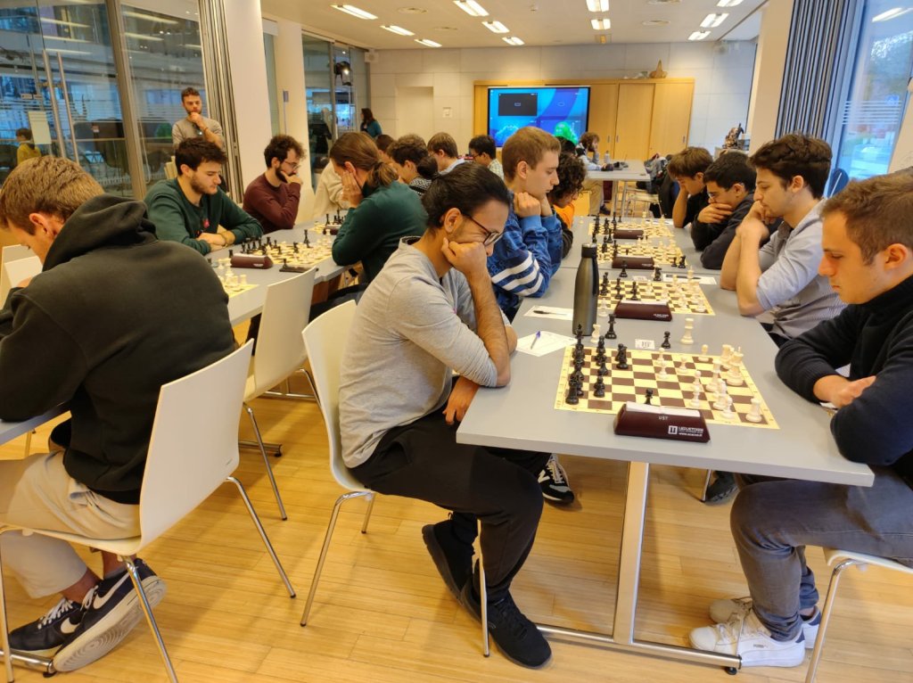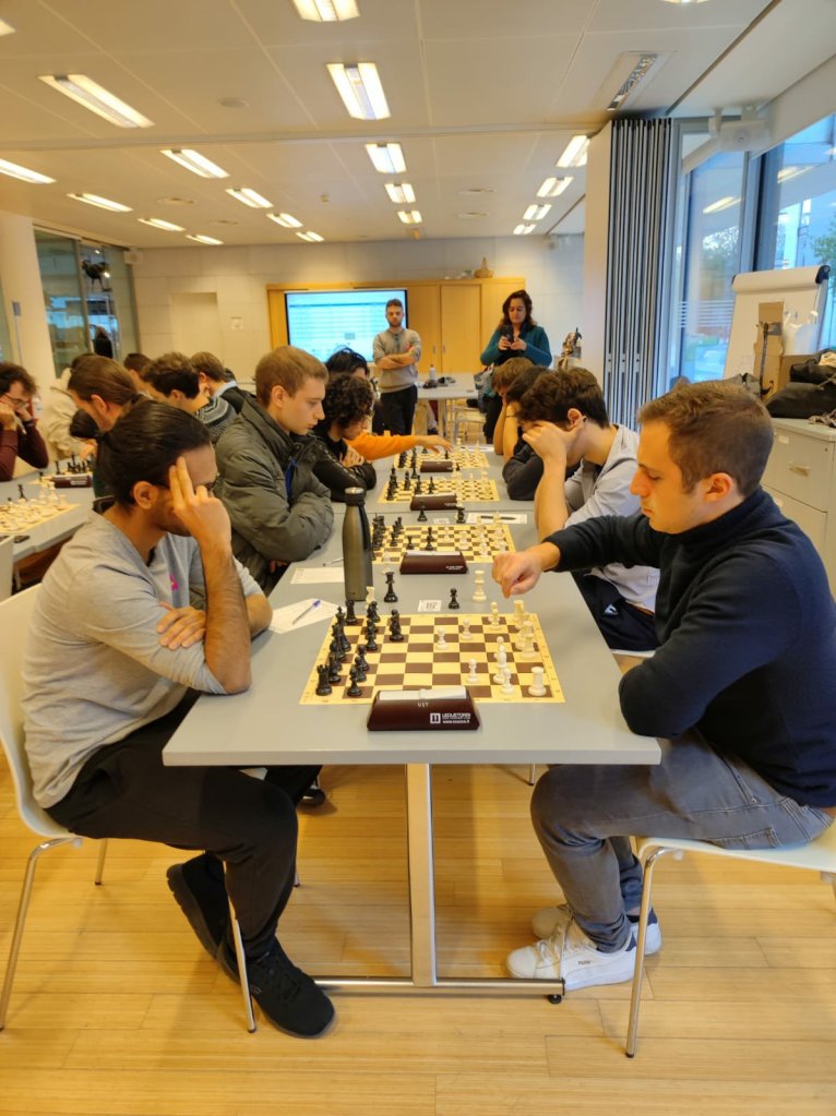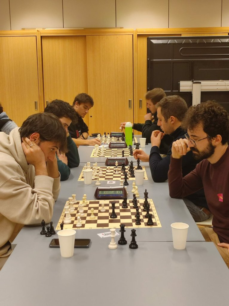 Oggi si sono trovati a giocare 25 universitari, mostrando sportività e sana passione per il nobil gioco, su 5 turni con tempo di riflessione 20’+3″ a mossa.