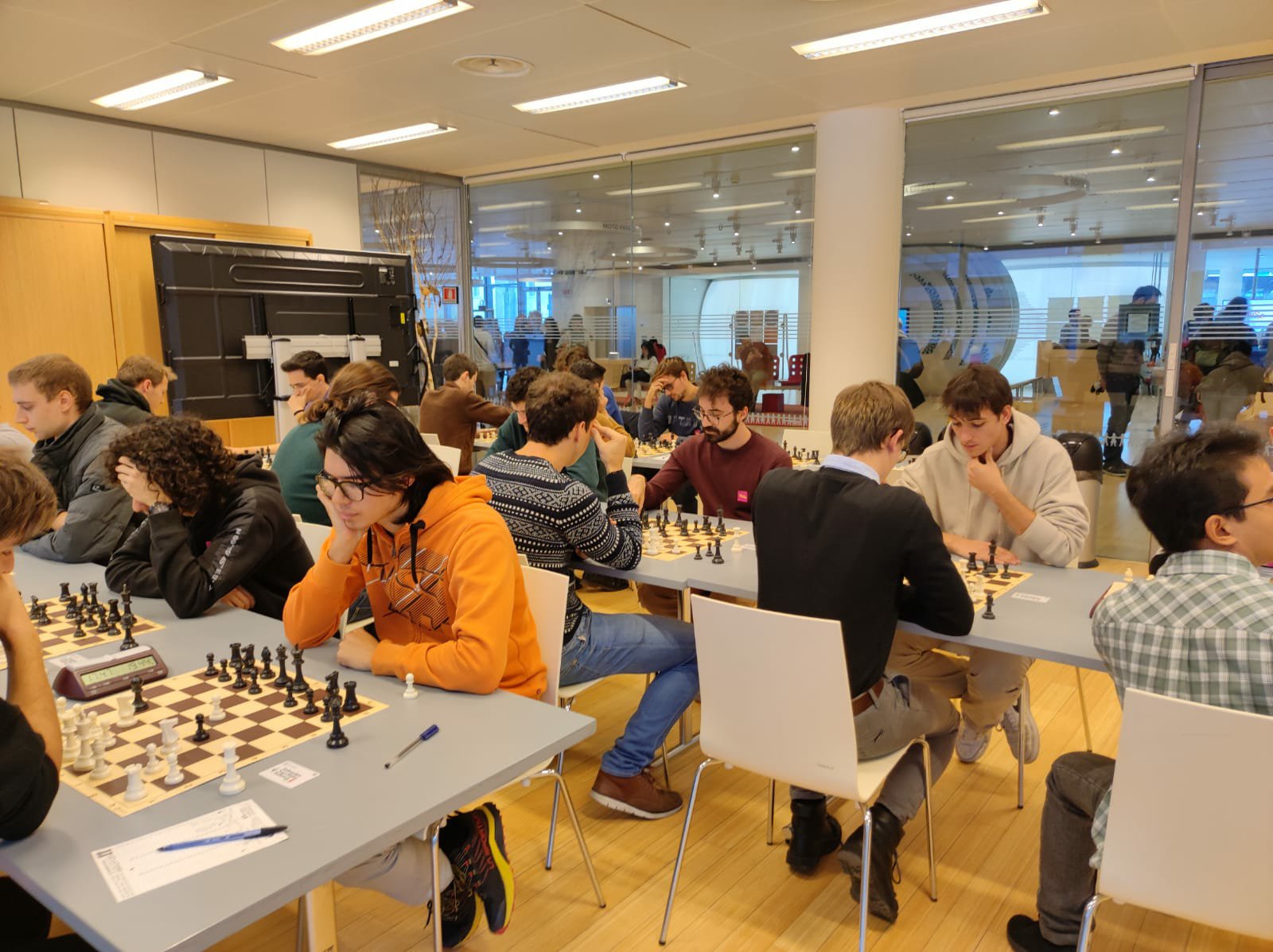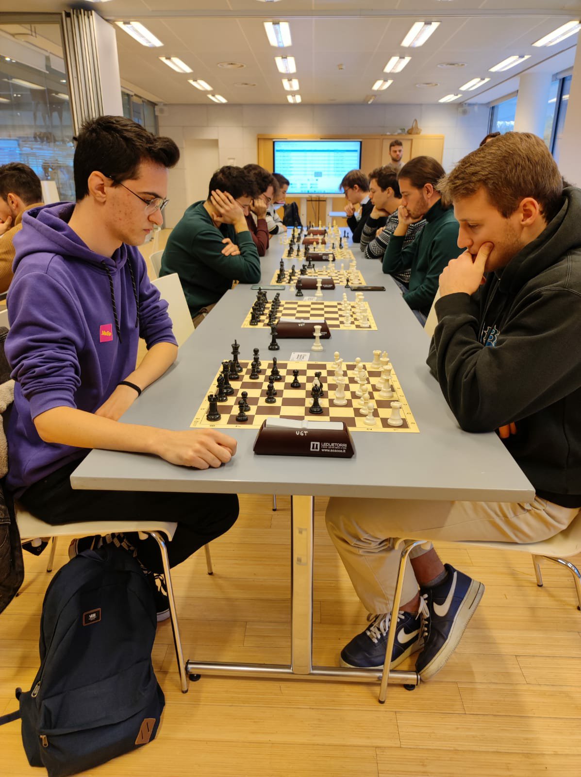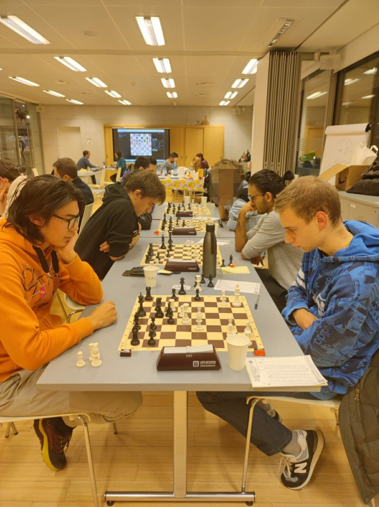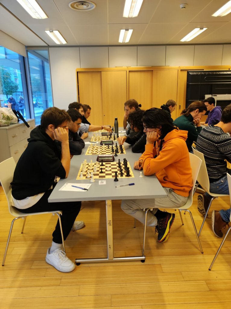 Oggi si sono trovati a giocare 25 universitari, mostrando sportività e sana passione per il nobil gioco, su 5 turni con tempo di riflessione 20’+3″ a mossa.