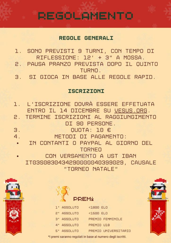 2° Scacco Natale Trentino Posted on 2 dicembre 2024 by Robbi Pronti per la 2° edizione di questo torneo amatoriale immerso tra amicizia e simpatia? 👉 Vi aspettiamo 👈 ISCRIZIONE Condividi: Fai clic per condividere su X (Si apre in una nuova finestra) X Fai clic per condividere su Facebook (Si apre in una nuova finestra) Facebook Mi piace Caricamento...