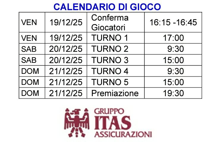 Torneo valido per acquisizione e variazione punteggio FIDE standard: per partecipare è richiesto il tesseramento agonistico alla FSI.