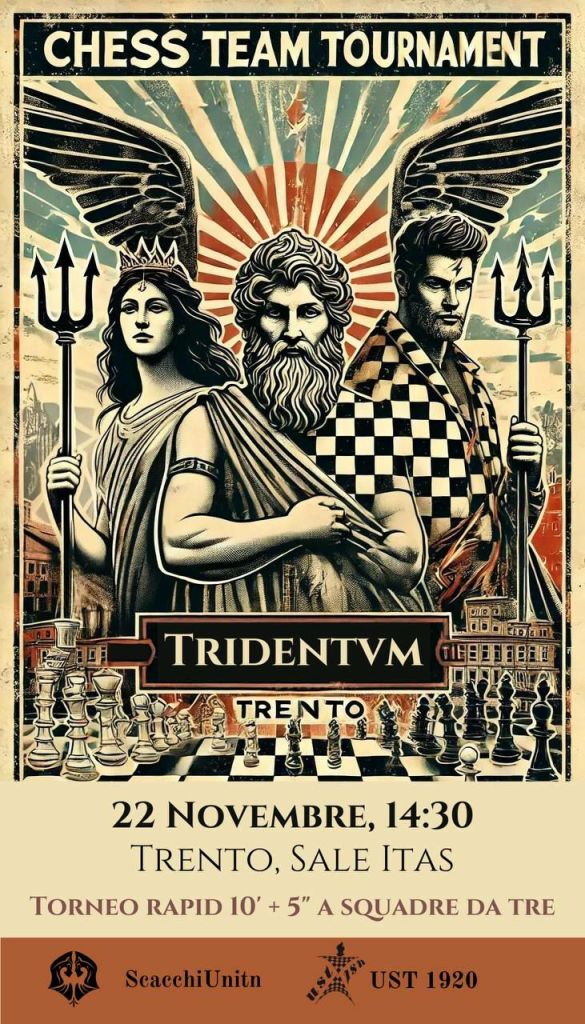📅 Data: 22 Novembre ⏰ Ora: 14:30 📍 Luogo: Parco delle Albere, Sala Itas 💶Costo: 30€ a squadra Elo Max di squadra: 6000