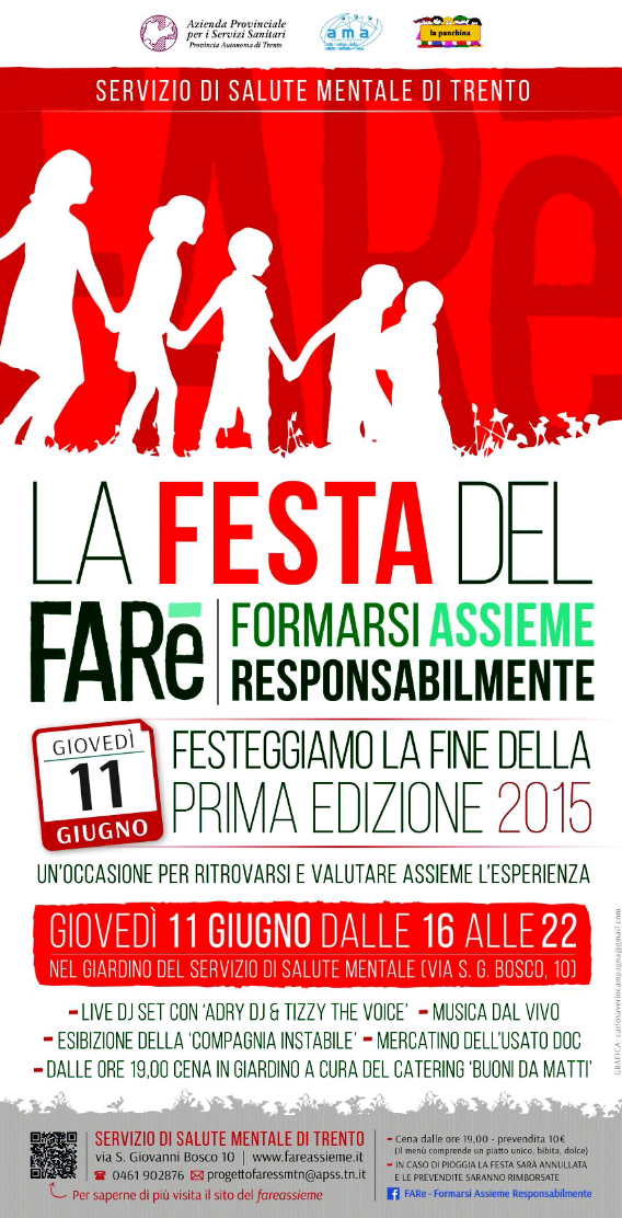 Giovedì 11.06.15 saremo presenti come UST alla FESTA del FARE, una festa di tutte le Persone e Associazioni coinvolte nelle attività per il Servizio di Salute Mentale di Trento.